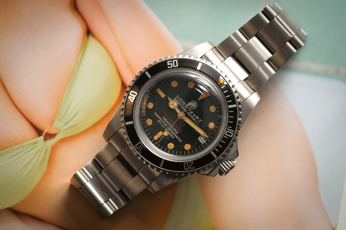 It’s funny that, despite the Submariner being such a classic design, this is actually my first time creating a watch in this style specifically. By that I mean a classic Sub with domed acrylic crystal and a date window. This piece features a beautifully weathered dial, gold hands with matching patina, and a bezel that looks like it has seen years of use.